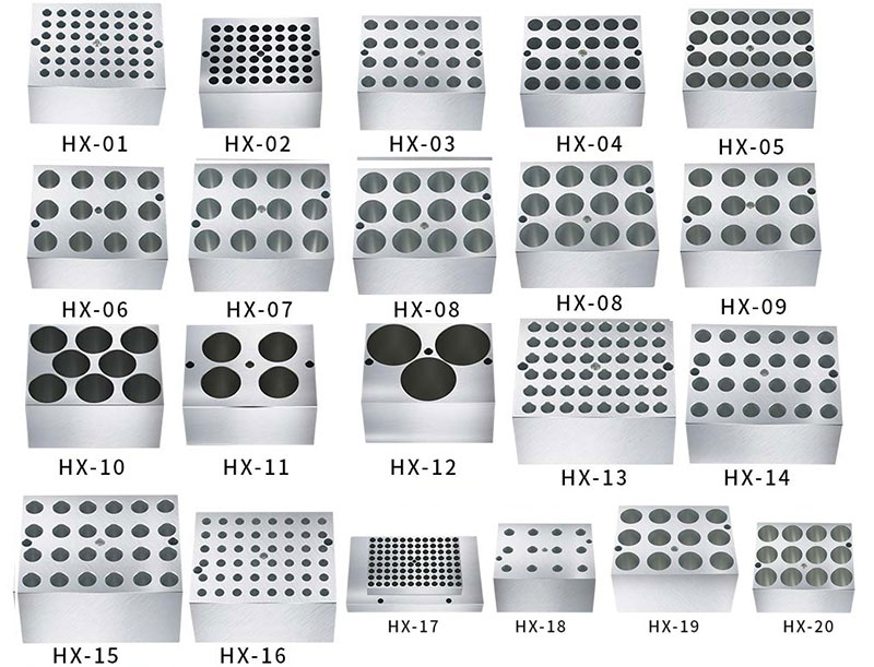 HX-B | 8.1/24mm | 54 Holes*0.5ml centrifuge tube | 107*71*25mm |