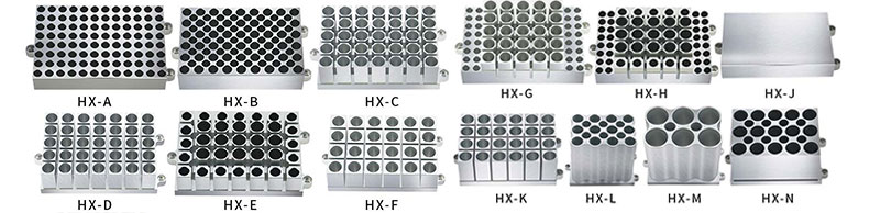 HX-G | 6.3/15mm | 32 Holes*0.2ml+25 Holes*1.5ml centrifuge tube | 107*71*19mm(32holes) |